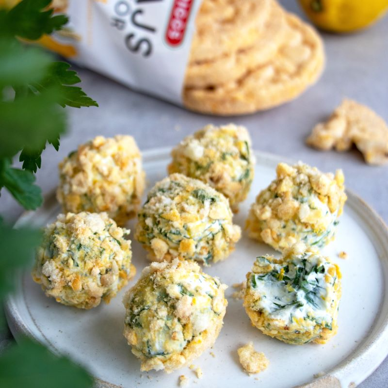 Nämä voi valmistaa myös vegaanisina käyttämällä vegaanista tuorejuustoa ja esimerkiksi Friggs Chia & Merisuola -maissikakkuja.