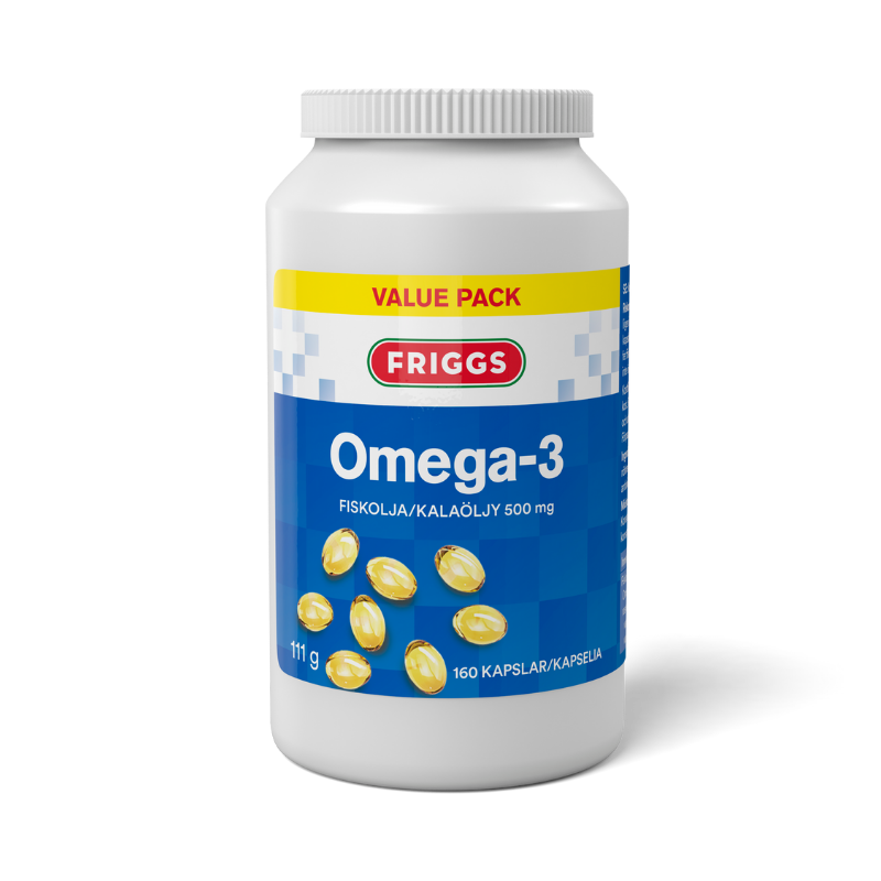 Friggs Omega-3 -ravintolisä sisältää monityydyttymättömiä rasvahappoja, joita löytyy pääasiassa rasvaisista kaloista, kuten lohesta ja makrillista. Omega-3 on monityydyttymättömien rasvahappojen ryhmä. Omega-3-rasvahapot ovat välttämättömiä, mutta elimistö ei pysty valmistamaan niitä itse. Siksi on tärkeää saada ne ravinnon kautta.